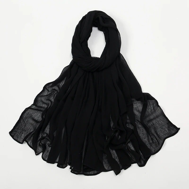 Elegant crinkle georgette hijab with soft texture and flowy drape — lightweight, breathable, and easy to style for everyday and formal wear.