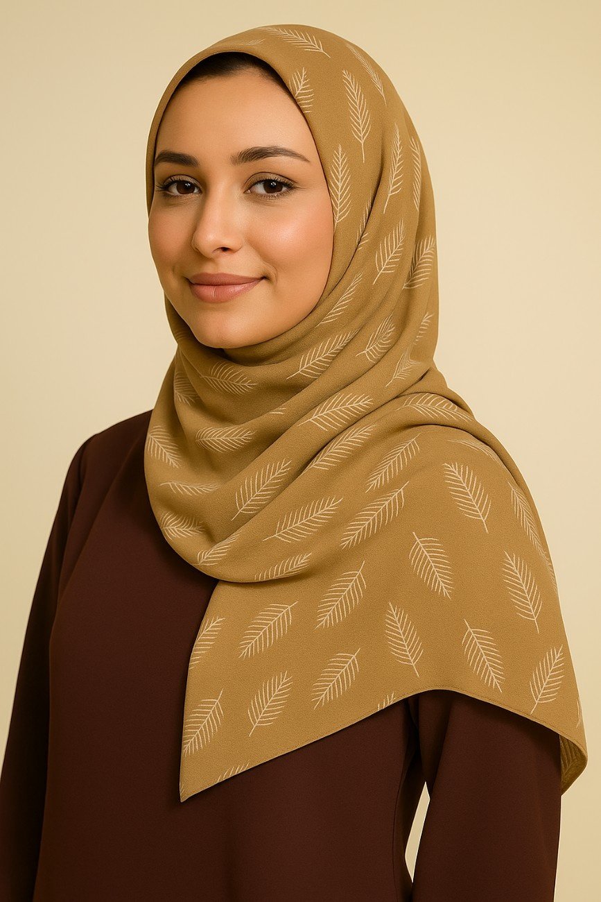 Lightweight cotton lawn hijab with elegant leaf foam print — breathable, soft, and perfect for effortless summer styling.