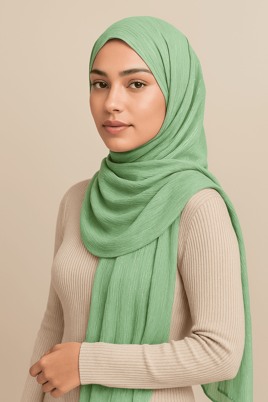 Soft georgette hijab with a gentle shimmer — perfect for adding glow to your party or evening outfit.